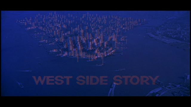 Desde el minuto 1 ya es plantea una intensa declaración de intenciones: sólo la BSO de Bernstein sonando con una imagen de unas lineas de colores diseñada por Saul Bass sobre un fondo que va cambiando de color, hasta que nos damos cuenta a través de un fundido que esas lineas son el perfil de los edificios de la isla de Manhattan, el gran escenario donde se desarrollará la historia.Con esta sencilla introducción se nos presenta uno de los elementos importantes de la película: la música.