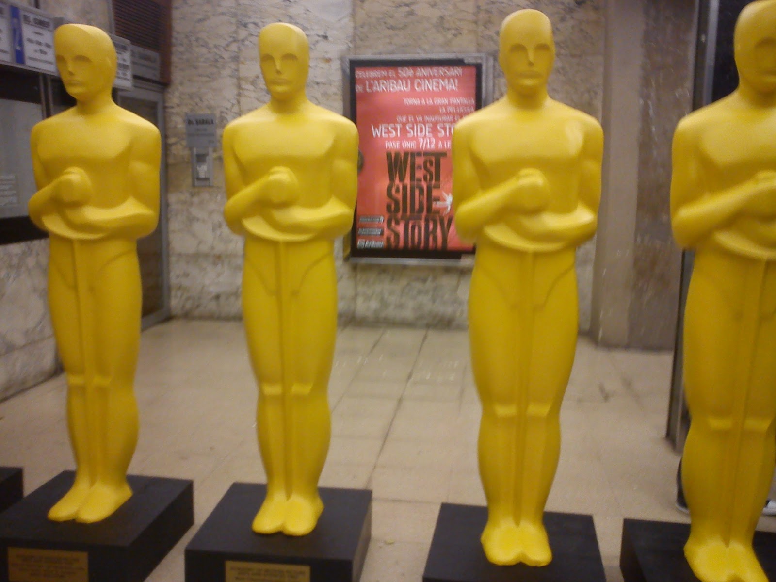Algunos de los Oscar en la entrada del cine. |