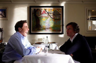 Michael Winterbotton es un director que cuenta con una filmografía muy diversa con títulos tan diferentes como 24 hour party people, 9 songs, El demonio bajo la piel o este The trip que nos toca comentar. A Steve (Steve Coogan) le ha dejado su novia pero no quiere cancelar un viaje programado desde hace tiempo en donde juntos recorriendo los diez mejores restaurantes de Inglaterra con la excusa de escribir un artículo para The Observer. Como no quiere ir sólo pero no encuentra a nadie que quiera acompañarlo decide invitar a un compañero actor Rob (Rob Brydon) con el que ha trabajado y con el que tiene una relación algo tensa. Así que juntos cogen el coche y emprenden un viaje en donde van recorriendo el norte del país. Durante seis comidas hacen un viaje gastronómico en donde van descubriendo una buena cantidad de restaurantes y de buena comida a la vez que mantienen una serie de conversaciones en donde van mostrando su ego y donde no se sabe muy bien si se caen bien o si están a punto de matarse. Es una comedia bastante entretenida con una historia sencilla que se sustenta en dos actores carismáticos y un buen puñado de diálogos así como también un viaje por Inglaterra y por su nueva gastronomía. En los títulos de crédito no aparece ningún guionista y es que los diálogos son una improvisación de los dos actores protagonistas.