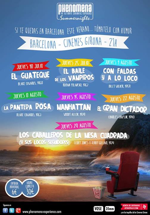 Ha sido un año movidito para Phenomena: cambio de sede del cine Urgell para alternar entre el cine Comedia, el Palau de Congressos de Catalunya y los cines Girona. Y segundo ciclo que proyectan en este último cine, tras el que dedicaron al fin del mundo el pasado mes de diciembre. Este verano proyectarán cada jueves en los cines Girona de Barcelona a las 21h las siguientes películas: