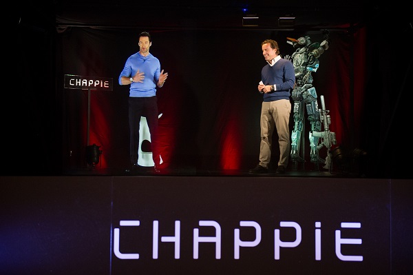 Como probablemente sabéis ya todos, el pasado sábado 28 de febrero tuvo lugar en Madrid la primera conferencia de prensa holográfica de la industria del cine en la cual el actor Hugh Jackman y el director Neill Blomkamp, mediante sus hologramas, presentaron desde Berlín a Madrid para presentar la película Chappie, que se estrenará el próximo 6 de marzo.