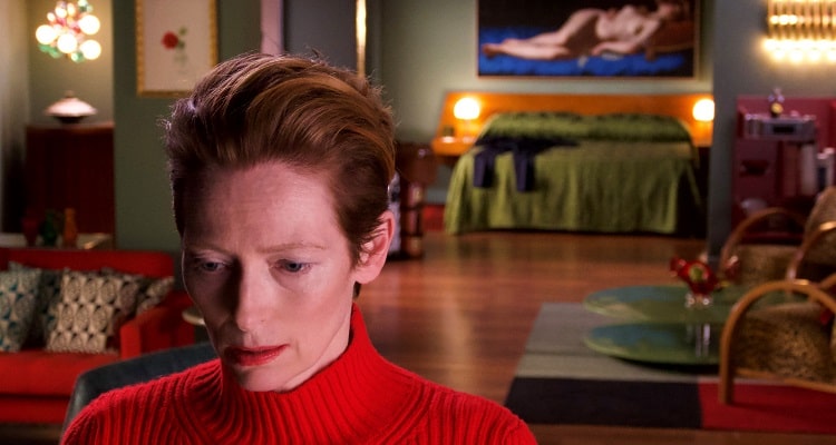 El monólogo de Cocteau resulta sorprendentemente actual y representativo de este fatídico 2020. En La voz humana, una imponente Tilda Swinton aparece en medio de una nave industrial con un majestuoso vestido rojo pasión de Prada. Es una mujer madura que se dedica al mundo del espectáculo y que pese a tenerlo todo aparentemente, siente que su mundo se desmorona después de que su pareja haya huido sin una explicación tras 4 años de intenso idilio. Desesperada, necesita algo a lo que agarrarse para seguir adelante, pero en su búsqueda el despecho parece su único hallazgo. La exquisita decoración de un ático de lujo, la alta costura y las obras de arte que cuelgan de las paredes parecen ejemplificar una lujosa jaula de oro en la que está encerrada por autoconvencimiento.